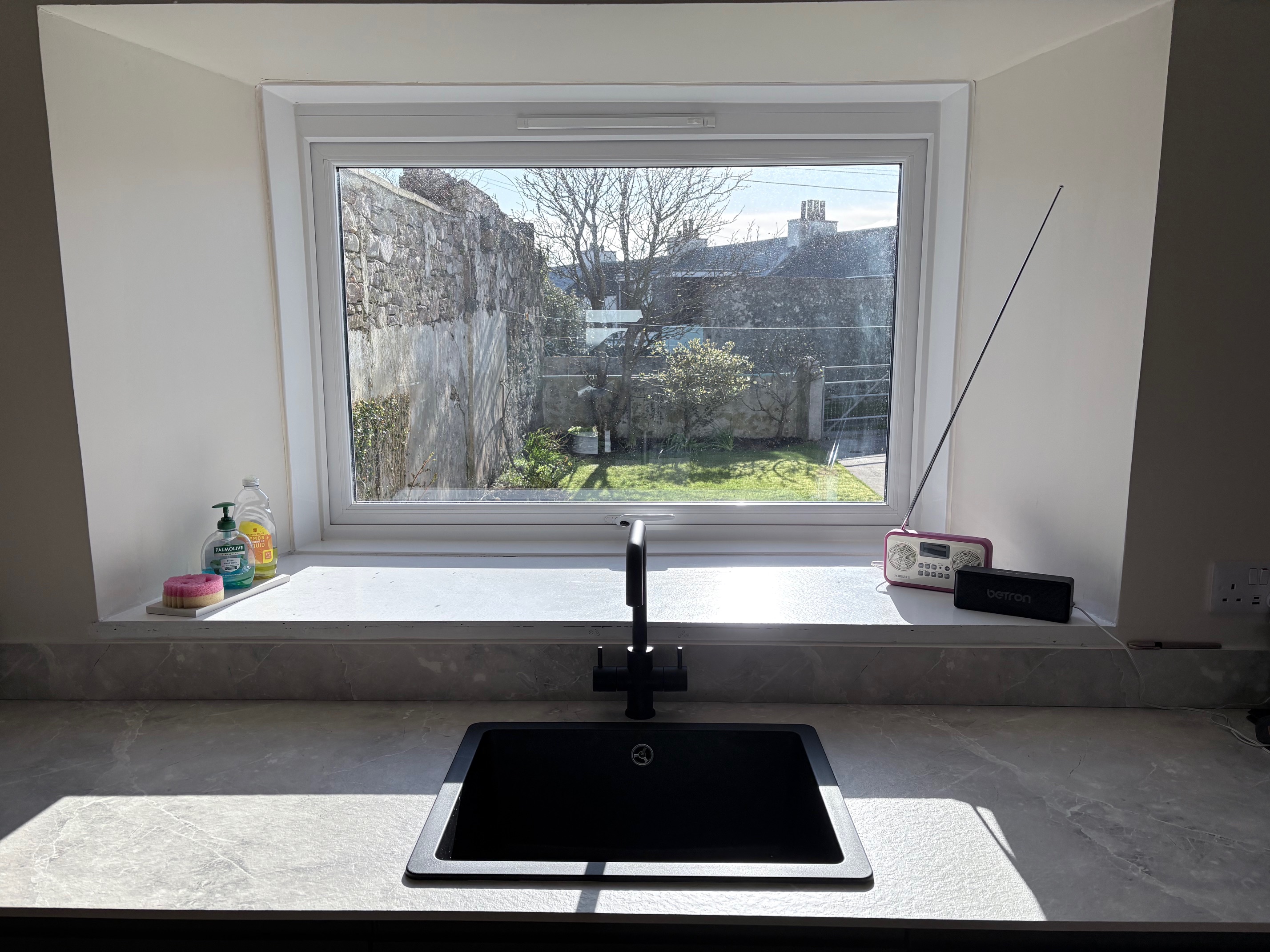 Kitchen window looking out to back garden